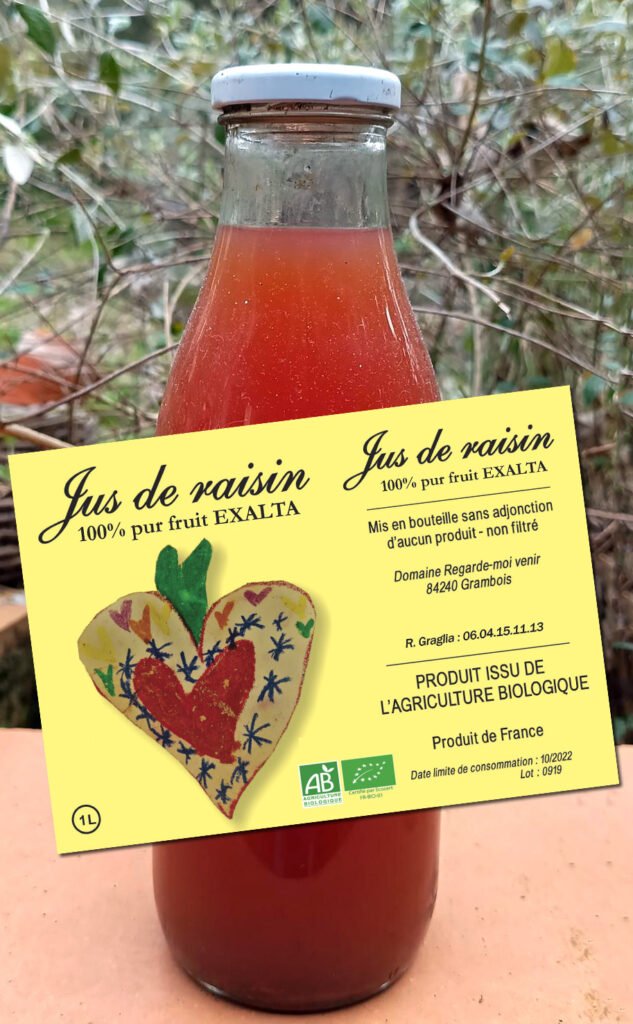 100% pur fruit, Exalta ou  Muscat, ce jus de raisin bio est étonnant par sa rondeur, sa présence et même sa couleur !